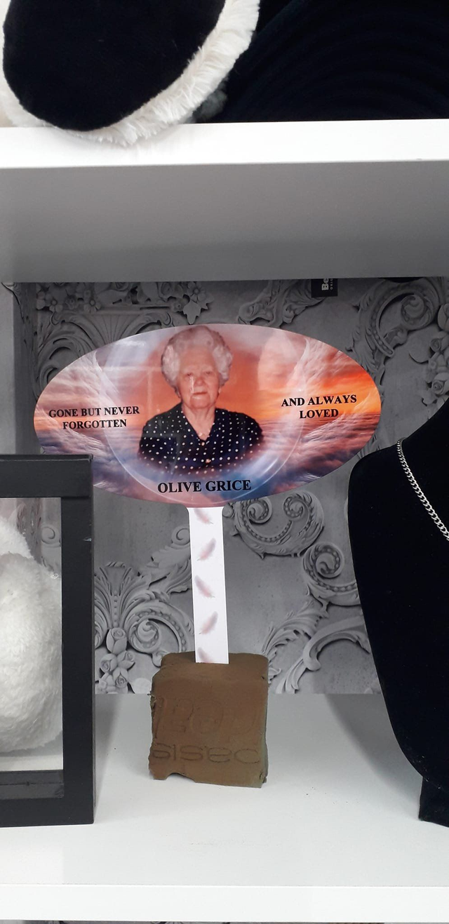 The memorial stakes are made of aluminium and made for going outside. A design can be created just for you, and a proof will be sent before posting. We will email you for photo and details or you can email to preciousprints4@gmail.com