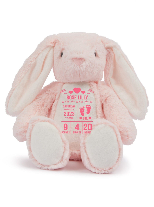 Personalised Rabbit with the baby's name, weight and date of birth. We will email you for the details once you have placed your order