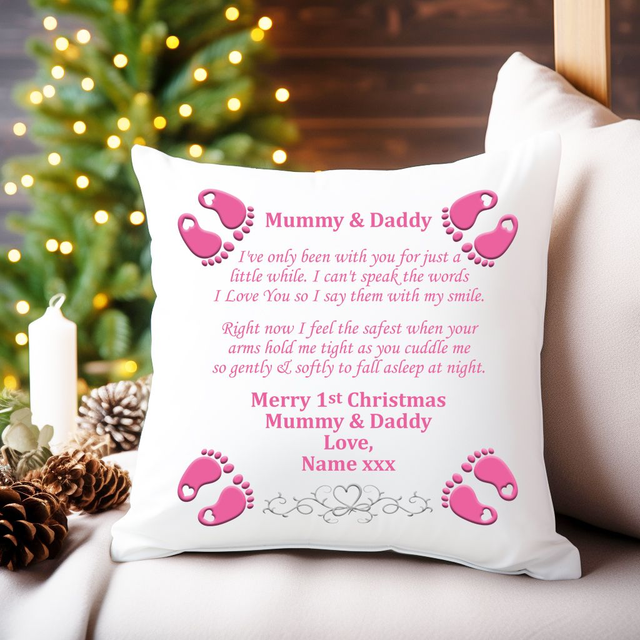 Personalised Mummy and Daddy Cushion from their baby this Christmas.